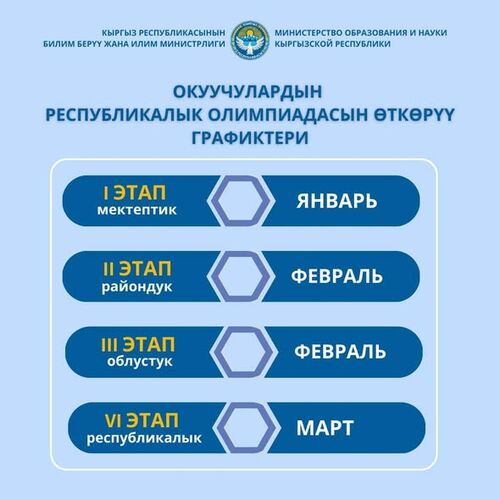 Кыргызстандын Агартуу министрлиги 2025-2026-окуу жылында окуучулардын республикалык Олимпиадасынын өткөрүү графиктерин жарыялады.
