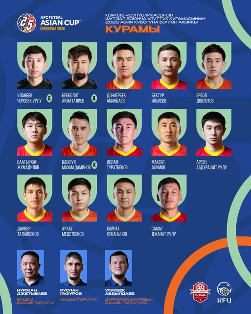Бүгүн, 27-январда 2026-жылдагы Азия Кубогу Индонезиянын Жакарта шаарында башталат. Бул тууралуу Кыргызстандын футзал ассоциациясы билдирди.