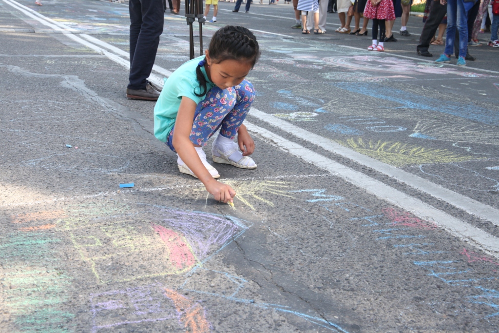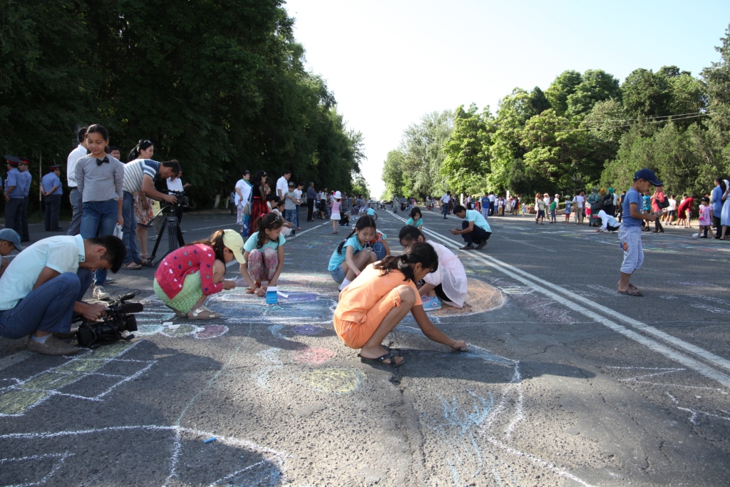 Бүгүн болсо каалада «Менин шаарым» аттуу балдардын асфальтка тарткан сүрөттөрүнүн сынагы жана сейил бактарда ар кандай спорттук таймаштар жана концерттик программа болуп өттү.