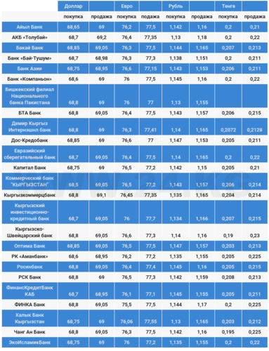Кыргызстандын коммерциялык банктарындагы доллардын 23-июндагы наркы.