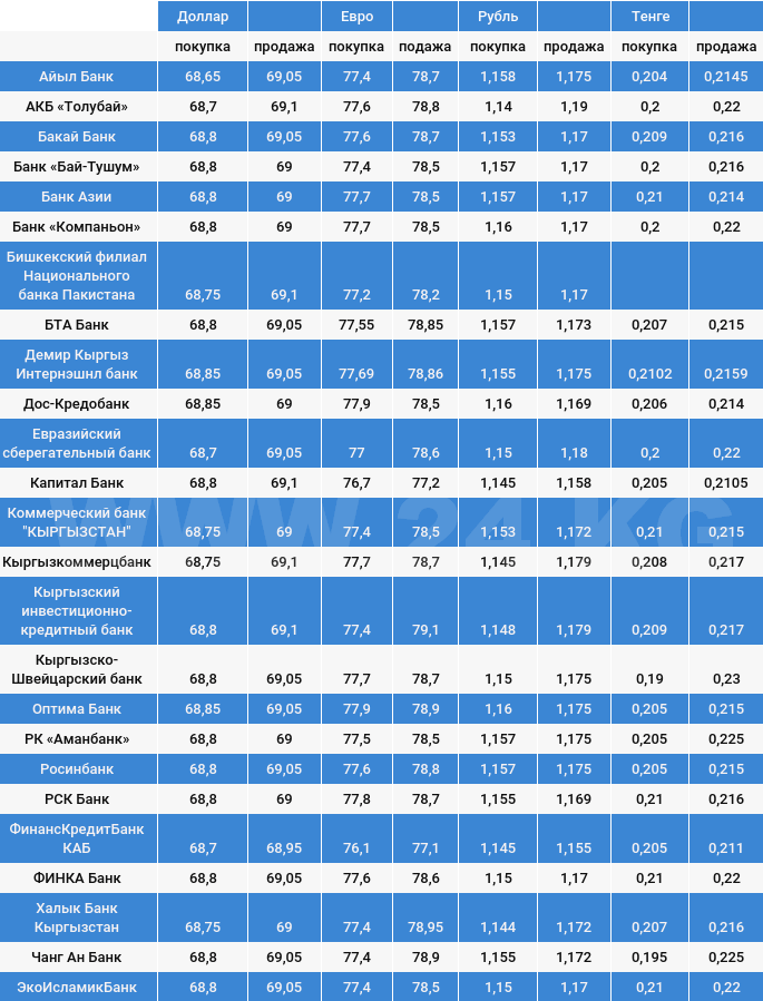 Доллардын коммерциялык банктардагы бүгүнкү наркы.