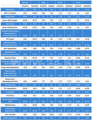 Доллардык коммерциялык банктардагы бүгүнкү наркы.