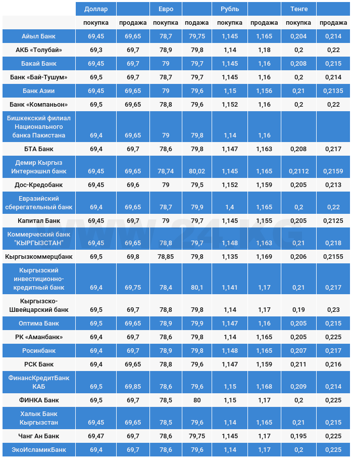 Доллардын бүгүн коммерциялык банктардагы наркы.