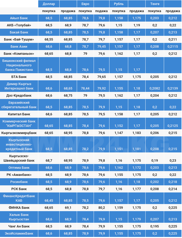 Доллардык коммерциялык банктагы наркы. Маалымат банктардан түшкөн билдирүүлөргө жараша өзгөрүп турат.