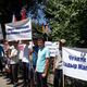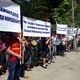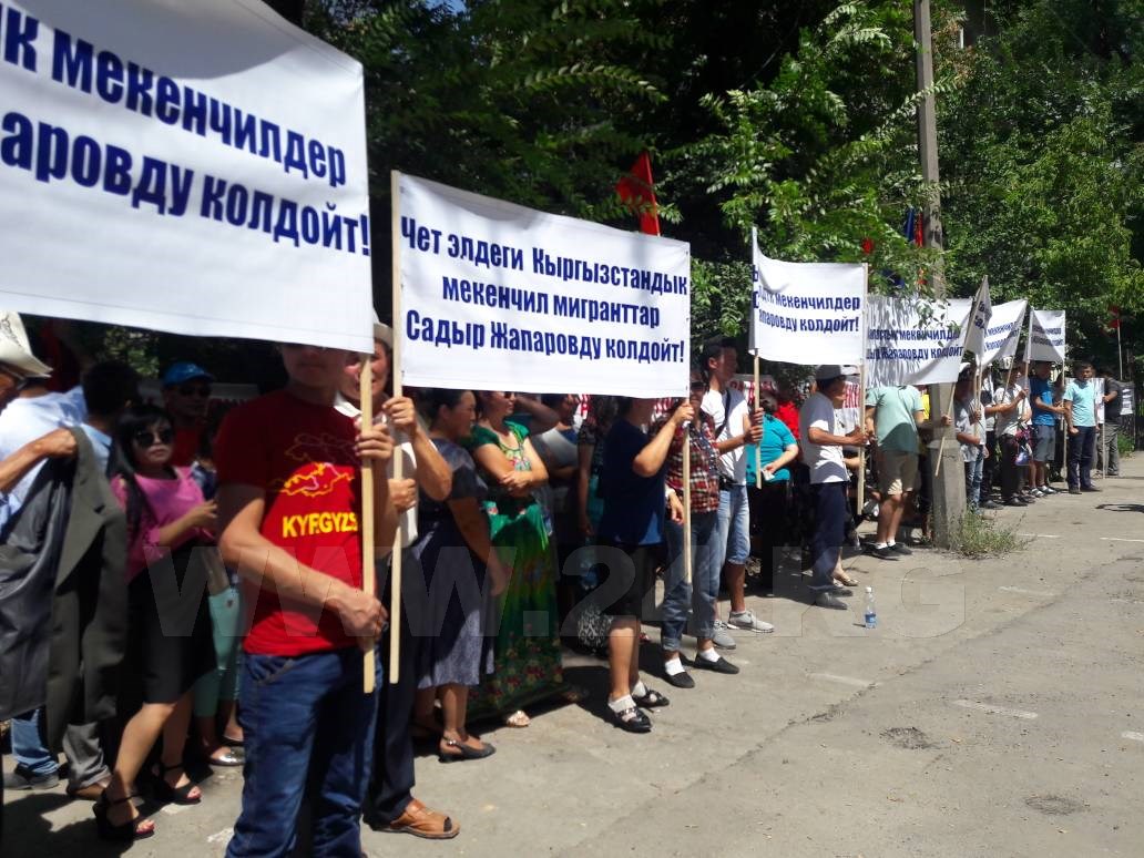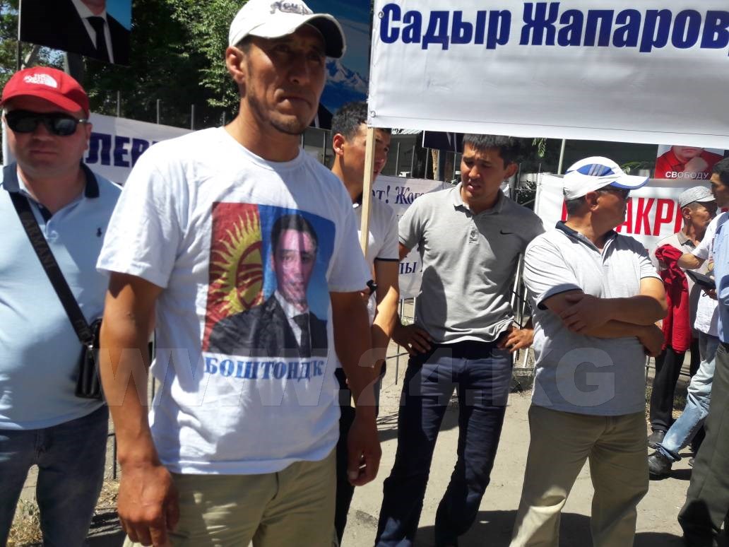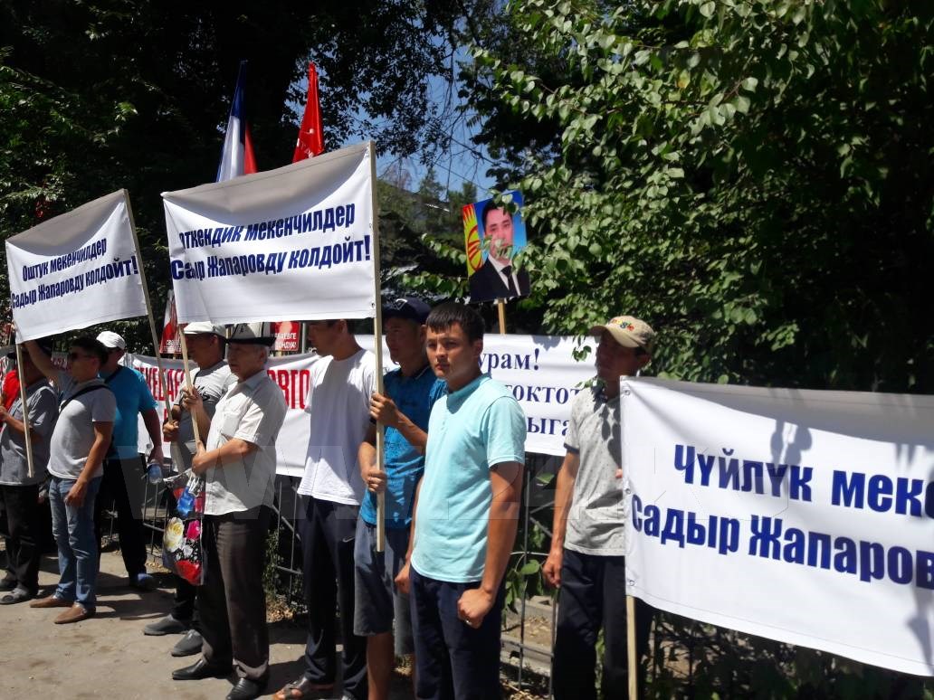 Биринчи май райондук сотунун алдына топтолгондор Садыр Жапаровго акыйкат чечим чыгарып, аны бошотууну талап кылышты.