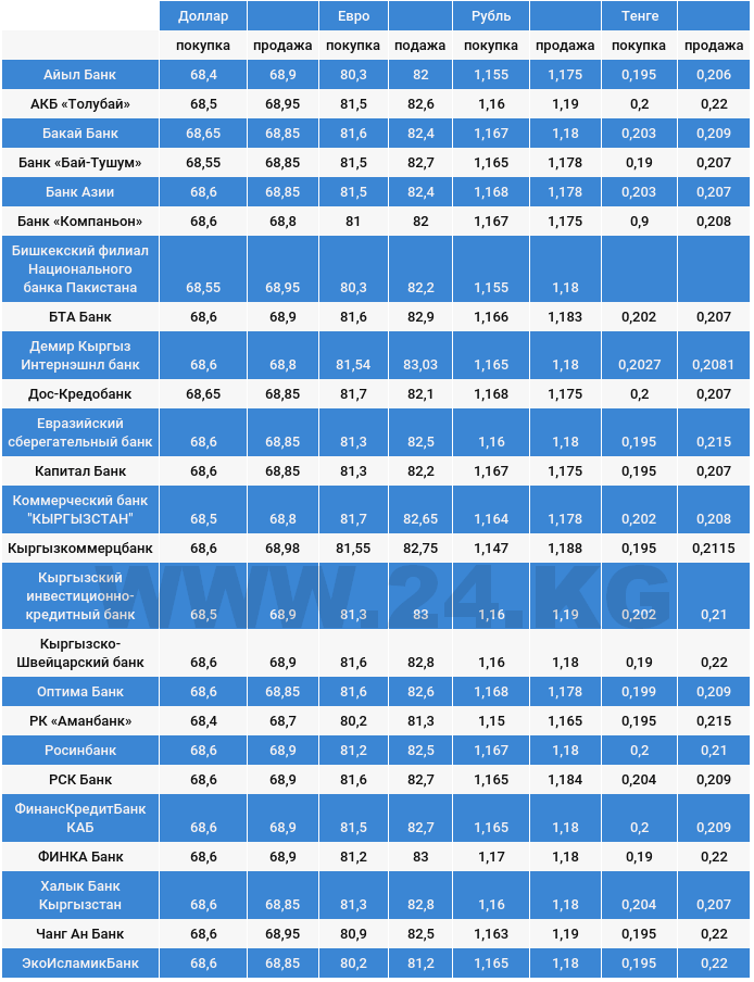Валюталардын коммерциялык банктардагы бүгүнкү наркы.