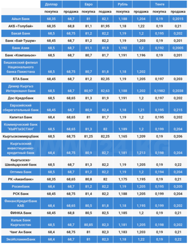 Валюталардын сомго карата коммерциялык банктардагы наркы.