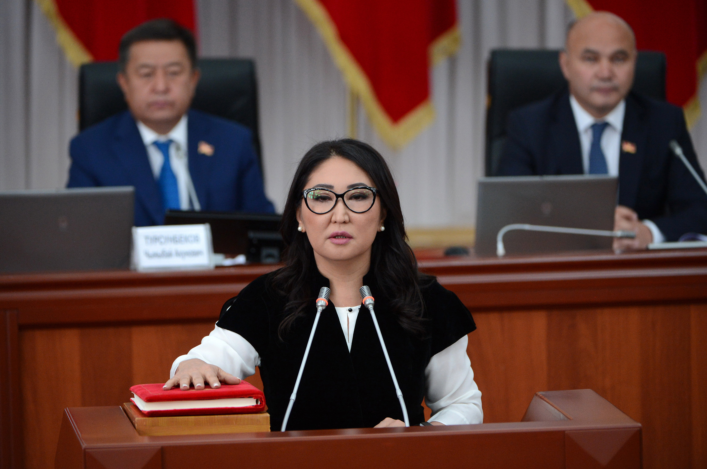 Өкмөт мүчөлөрү бүгүн Жогорку Кеңеште ант беришти. Ага президент Алмазбек Атамбаев дагы катышты.