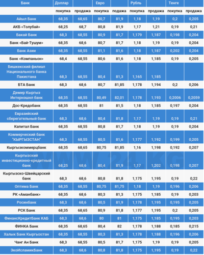 Чет элдик валюталардын коммерциялык банктардагы бүгүнкү наркы.