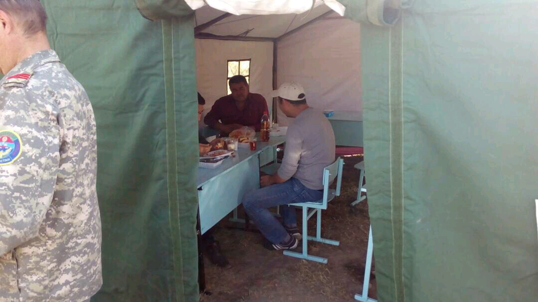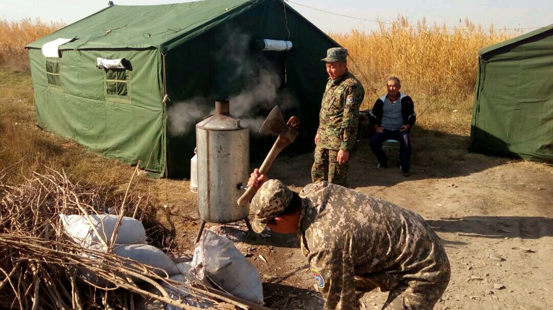 Жалпысынан ар бир өткөрүү пунктунда үчтөн болуп, кыргыз-казак чек арасында 12 чатыр тигилди. Анда ӨКМ чек арада өтө албай турган айдоочуларды жана жүргүнчүлөрдү ысык тамак менен камсыз кылып, медициналык жардам көрсөтүүгө даяр турушат.