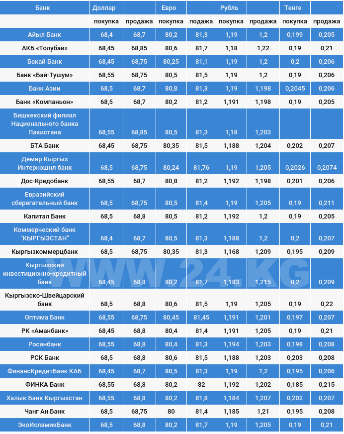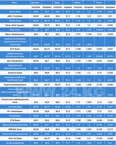 Чет элдик валюталардын коммерциялык банктардагы наркы.