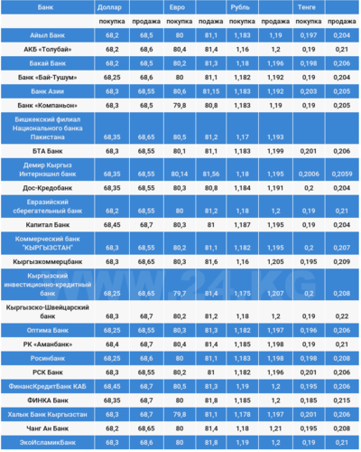 Валюталардын коммерциялык банктардагы наркы