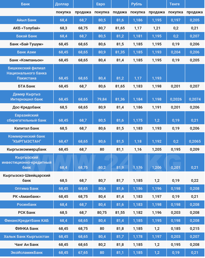 Чет элдик валюталардын коммерциялык банктардагы наркы.