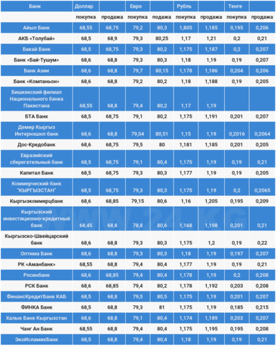 Чет элдик валюталардын коммерциялык банктардагы наркы.