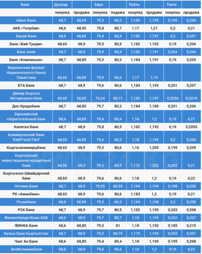 Чет элдик валюталардын коммерциялык банктардагы наркы.