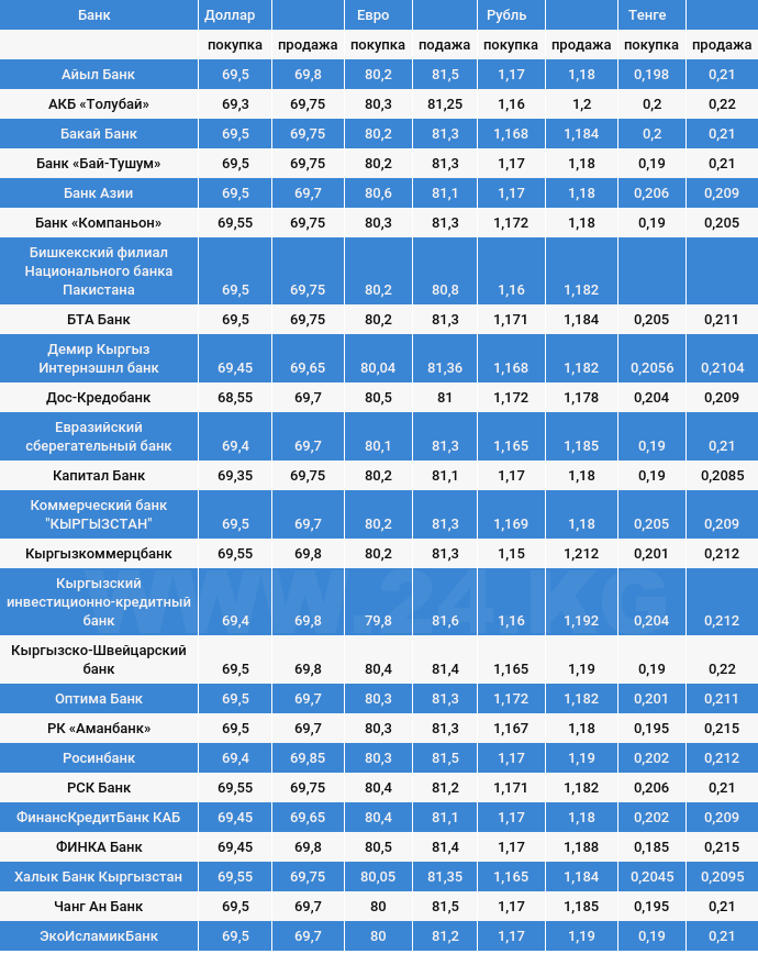 Чет элдик валюталардын коммерциялык банктардагы наркы.