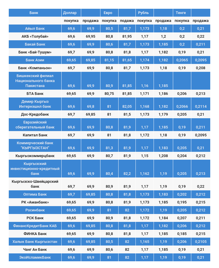 Валюталардын коммерциялык банктардагы наркы