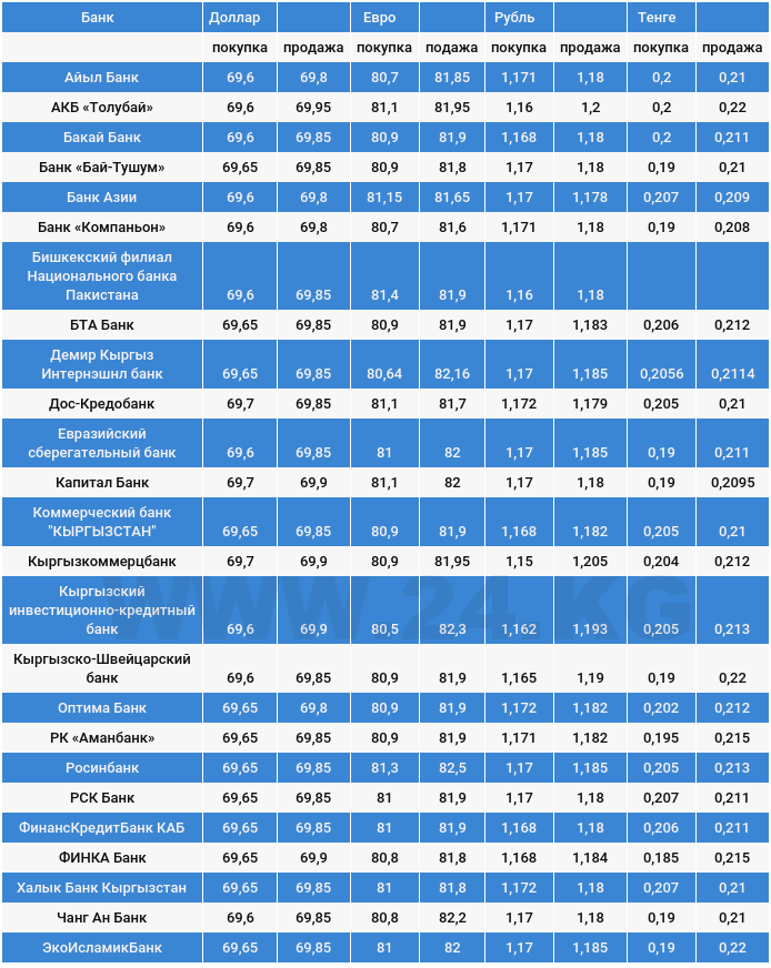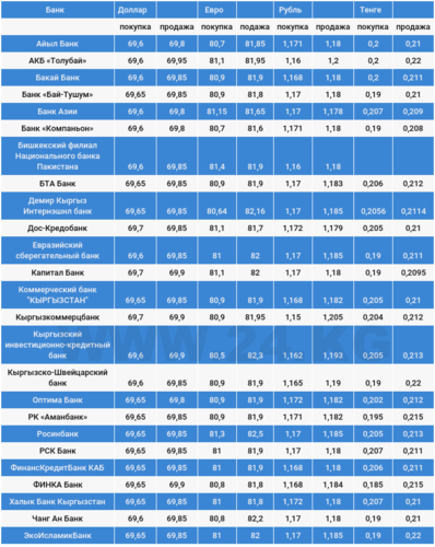 Чет элдик валюталардын коммерциялык банктардагы наркы.