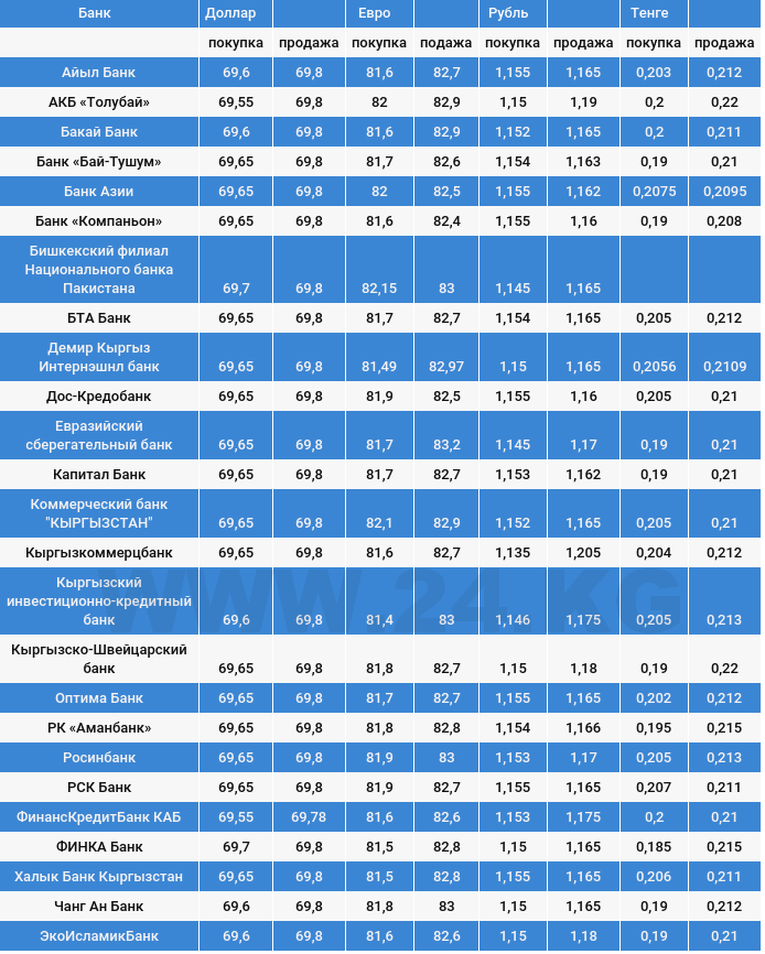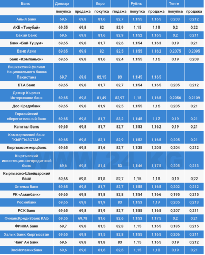 Чет элдик валюталардын коммерциялык банктардагы сомго карата наркы.