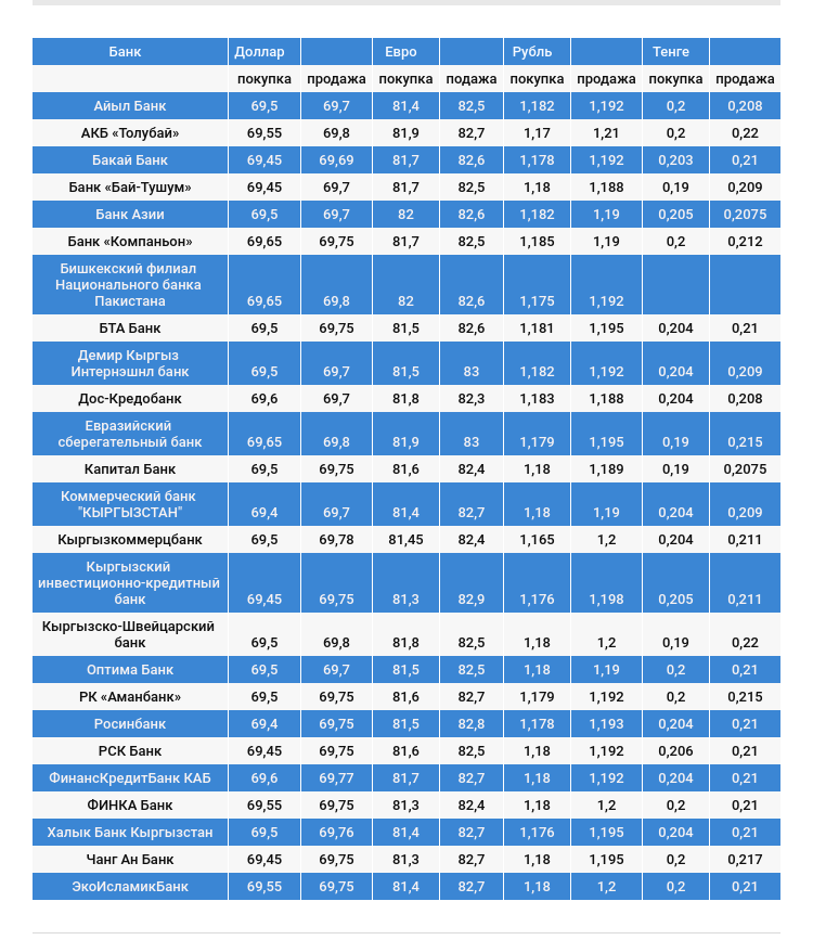 Валюталардын коммерциялык банктардагы наркы