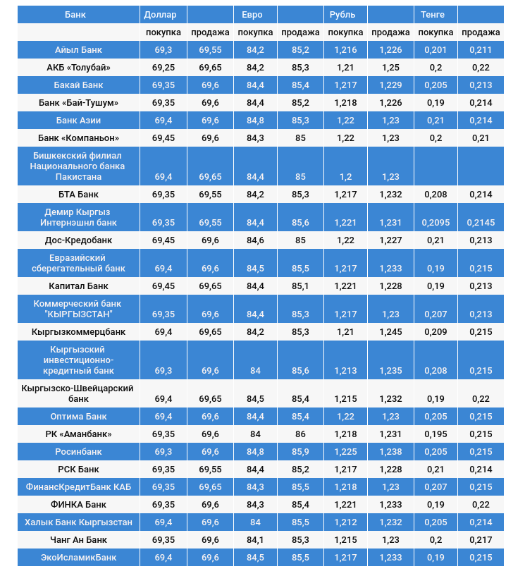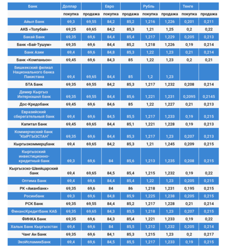 Валюталардын коммерциялык банктардагы наркы