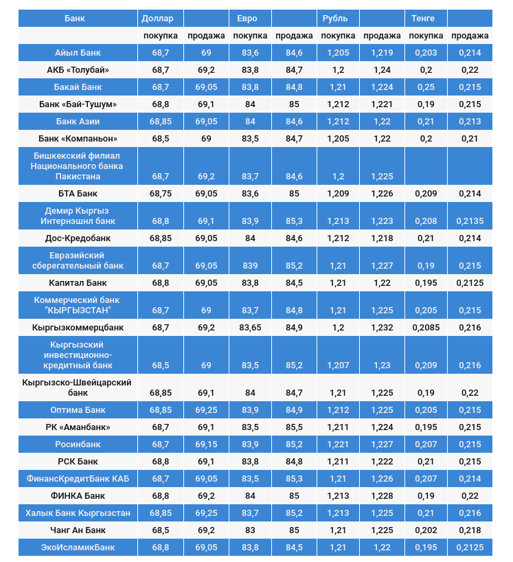Валюталардын коммерциялык банктардагы наркы