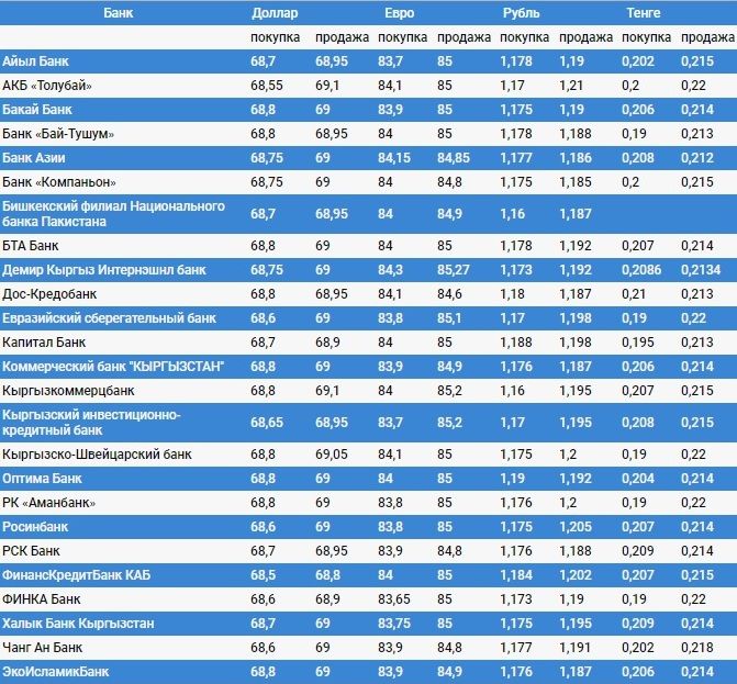 Валюталардын коммерциялык банктардагы наркы