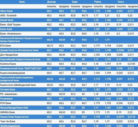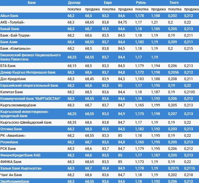 Валюталардын коммерциялык банктардагы наркы