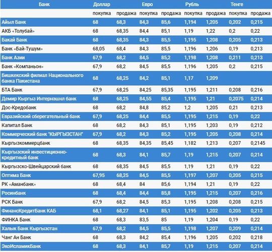 Валюталардын коммерциялык банктардагы наркы