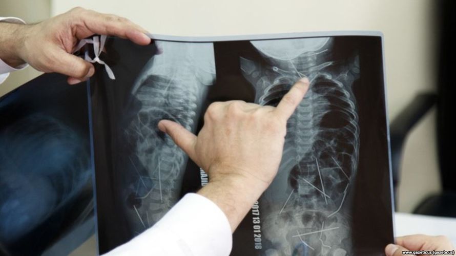 Өзбекстанда денесинен 16 кийим тигүү ийнеси табылган 11 айлык наристе ооруканада дарыланган соң үйүнө чыгарылды. Бул тууралуу 14-мартта Өзбекстан саламаттык сактоо министрлиги билдирди.