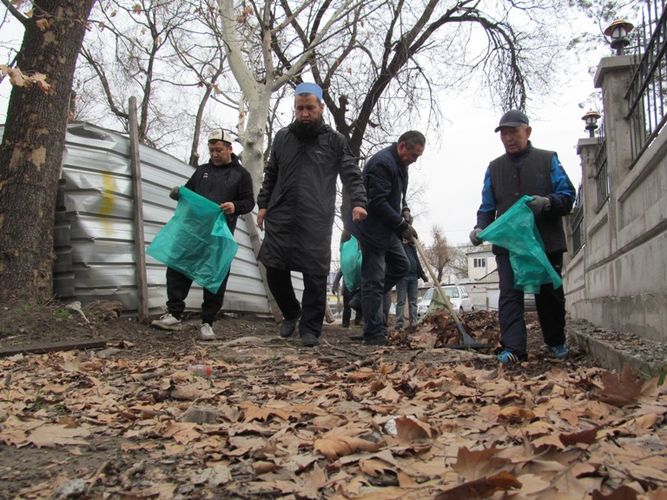 Муфтият кызматкерлери 24-мартта Жибек-Жолу проспектисинде жайгашкан борбордук мечиттин айланасын жана жол жээктерин тазалашып, таштандыларды чыгарышты. Ал эми Азерити Муфтий Максатбек ажы Токтомушев ар бир жаран өз үйүн кандай таза кармаса коомдук жайларды, мекенди дагы ошондой таза кармашы керектигин билдирди.