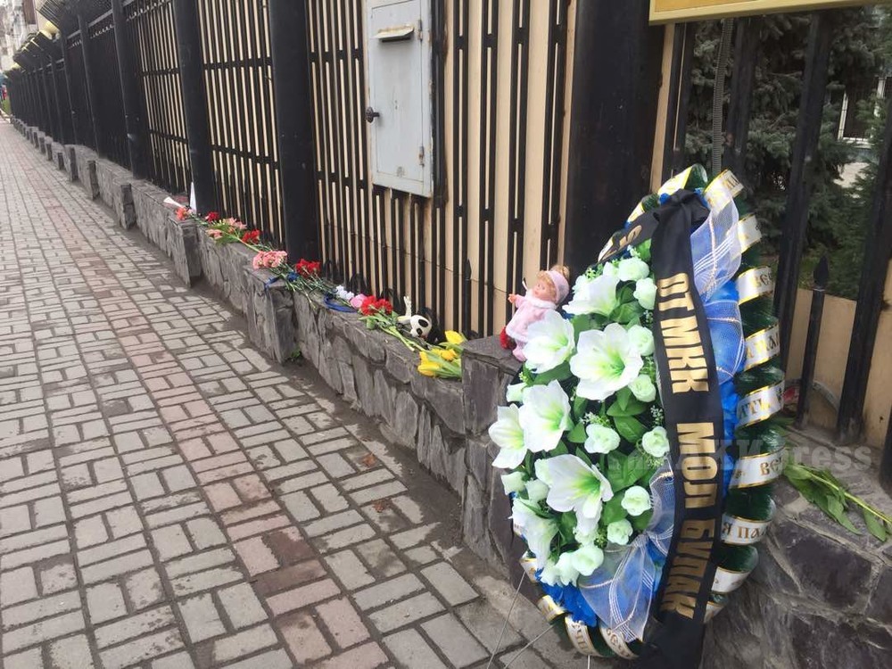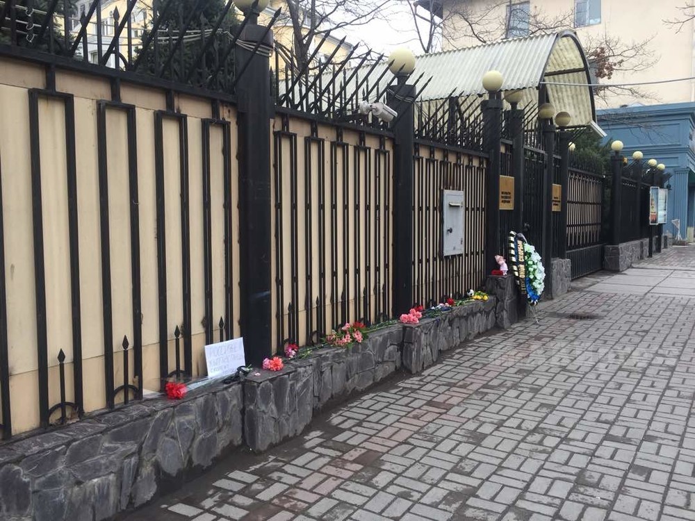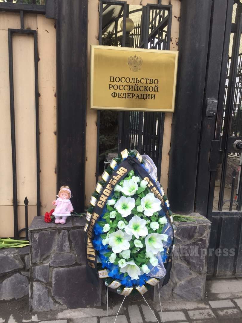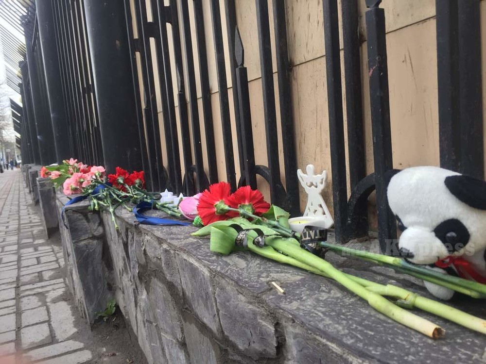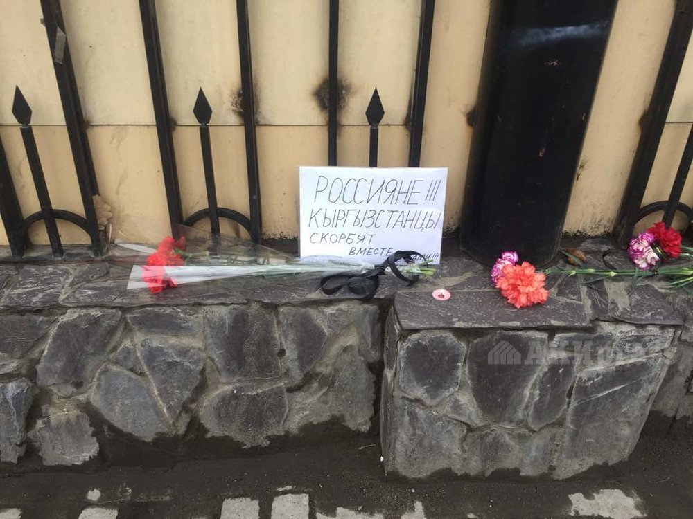 Кыргызстандыктар Орусияда өрттөн каза болгондорду эскерип, элчиликтин алдына гүлдөрдү, шамчырактарды жана оюнчуктарды коюшууда.
