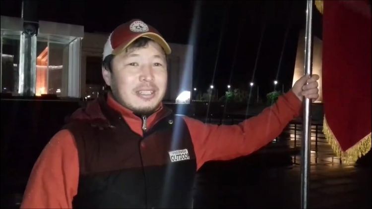 Ал эми авангард сүрөтчү Азамат Жаналиев үйдөгү туусун алып келип, борбордук аянтта түнү боо, эртең менен туу кайра ордуна көтөрүлгөнчө кармап турган. Бул кадамын ал аянтты башкы туусуз калтырбоо максаты катары түшүндүргөн.