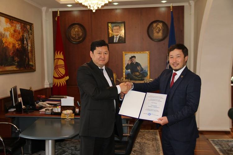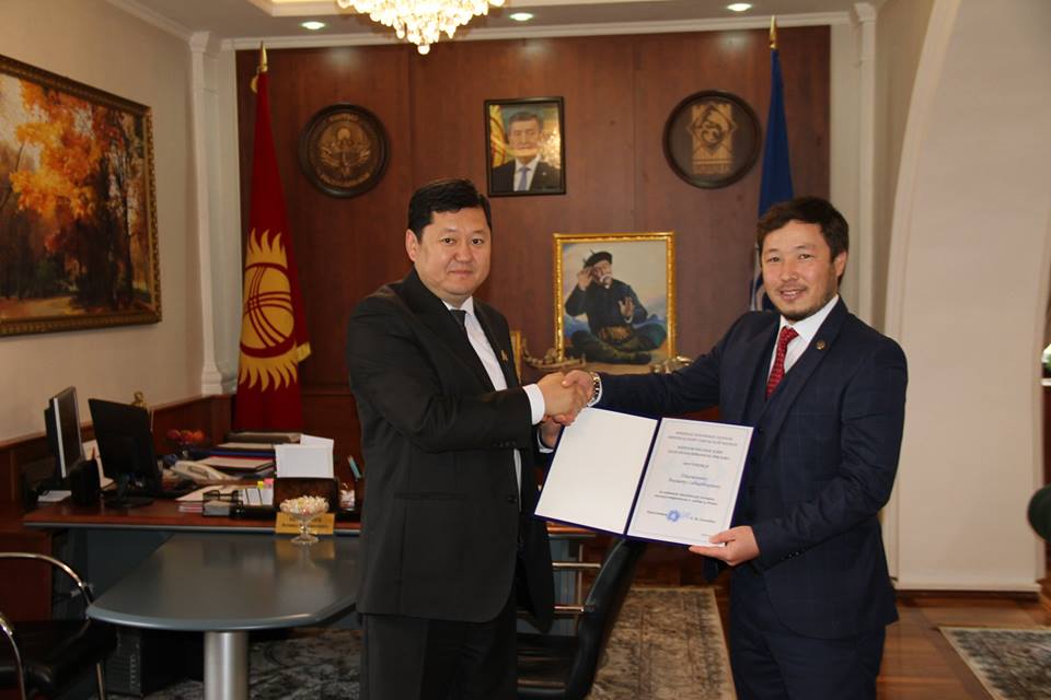 Борбордук аянта түнү бою туу көтөрүп турган Азамат Жаналиев Бишкек шаардык кеңешинин «Ардак грамотасын» алды.