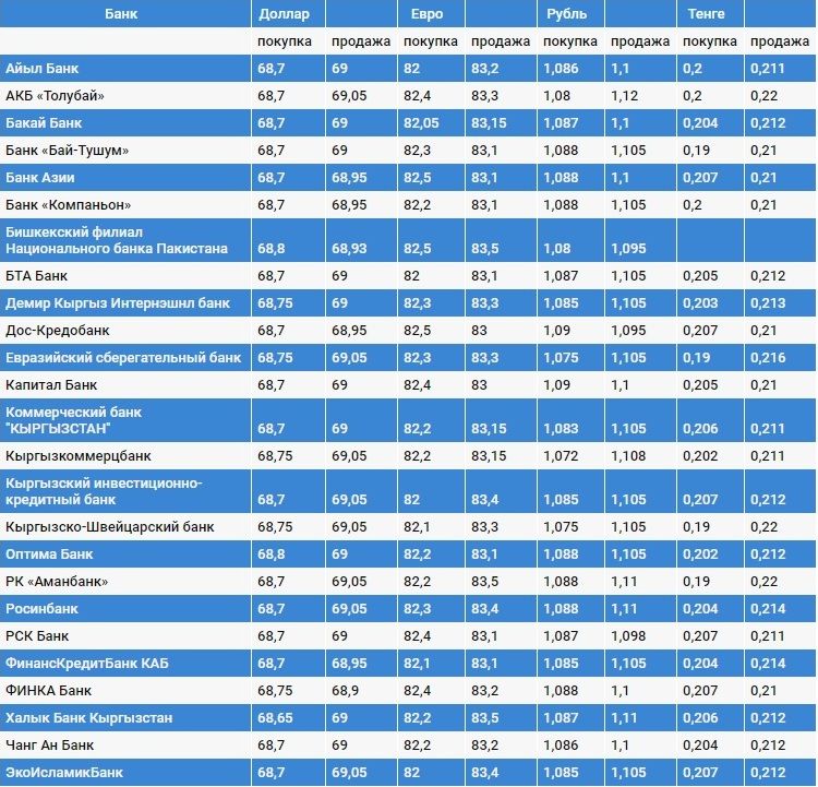 Валюталардын коммерциялык банктардагы наркы