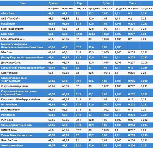 Валюталардын коммерциялык банктардагы наркы