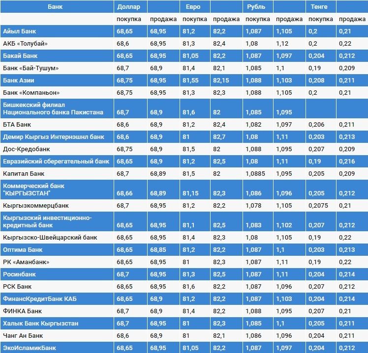 Валюталардын коммерциялык банктардагы наркы