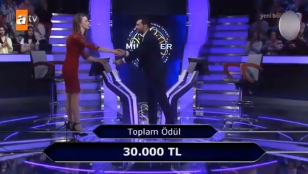 Түркиянын «Миллионер болгун келеби?» шоусунан Кыргызстан жараны 30 миң лир же 7 миң долларга жакын ачка утуп алды. Программа ATV телеканалы аркылуу 7-майда көрсөтүлдү.