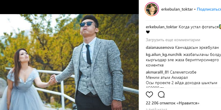 Ушундай эле сүрөттөр Еркебуландын Instagram баракчасына дагы чыкты.