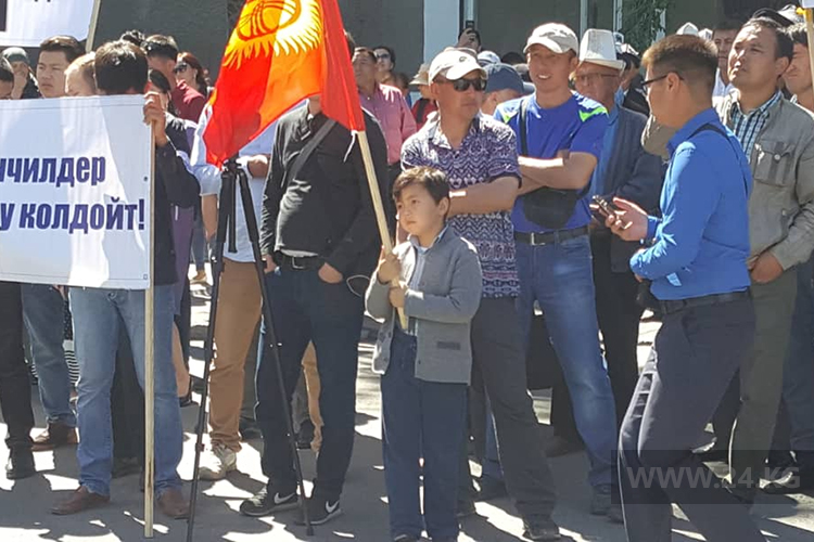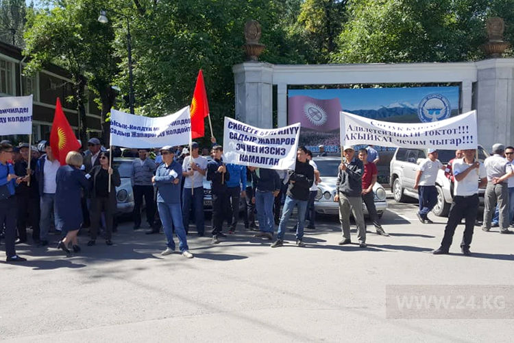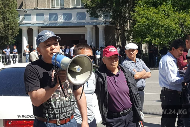 Жогорку соттун имаратынын алдында мурунку депутат Садыр Жапаровдун тарапташтары митинг өткөрүшүүдө.