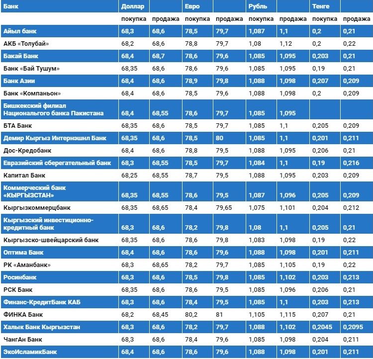 Валюталардын коммерциялык банктардагы наркы