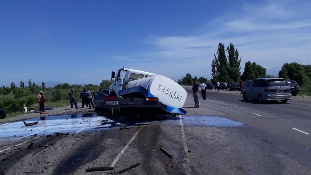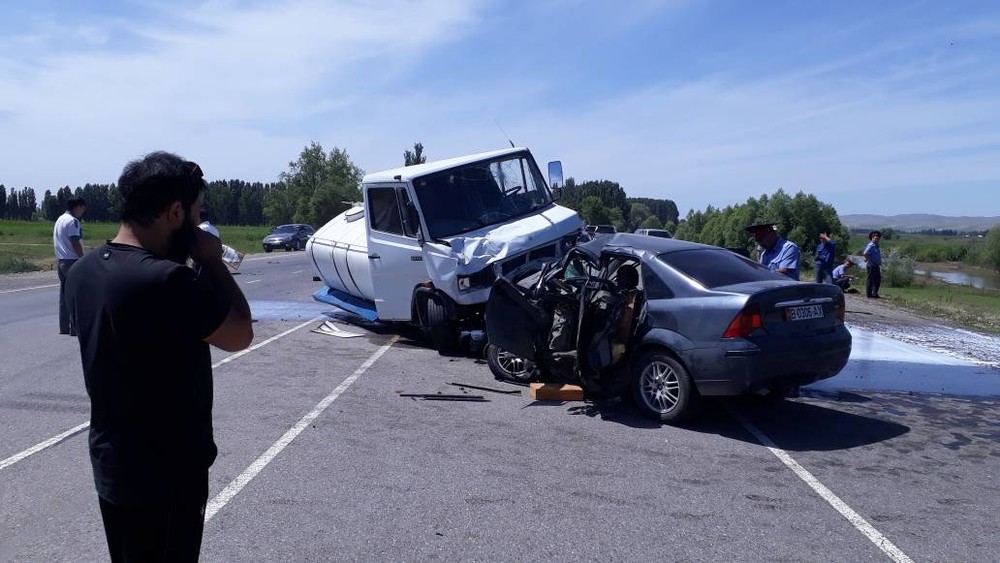 Маалым болгондой, сүт ташуучу «Мерседес-Бенц» (гигант) жана «Форд Фокус» үлгүсүндөгү унаалар бетме-бет сүзүшкөн.