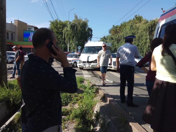 Маалыматка караганда, кырсыкка кабылган маршруттук унаада жабыркаган жүргүнчүлөр бар. Окуя болгон жерге тез жардам унаасы келди. Тартип сакчылары иш алып барышууда.