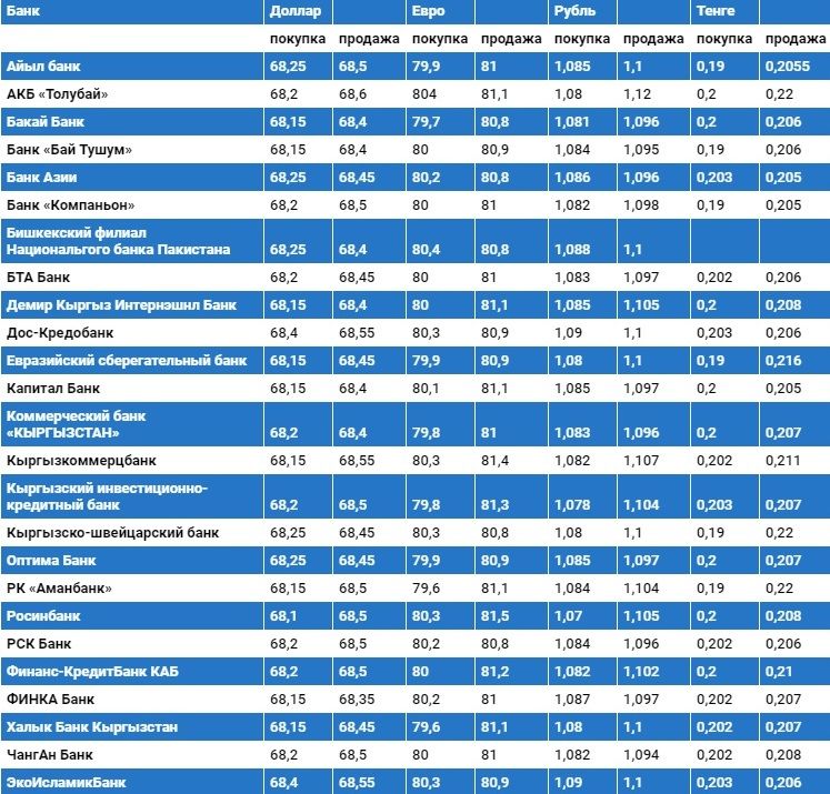 Валюталардын коммерциялык банктардагы бүгүнкү наркы