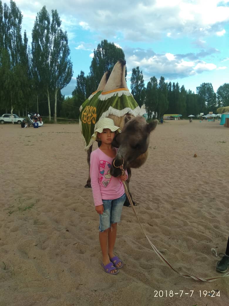 «Кичүү кызымдын аты Айпери. Ал 4 жашка чыкканда азыркы төө жаңы туулган. Кызым ага өзүнүн ысымын ыйгарган болчу. Ошондон бери экөөнүн аттары окшош. Бул төөнүн энесин Нарындан алып келгем. Төө пайдалуу киреше гана алып келет, чыгымы жок. Көл жээгиндеги тикенектерди, чычырканактарды жеп азыктанат. Ал эми сүтү рак ооруларына дабаа», — дейт төөнүн ээси.