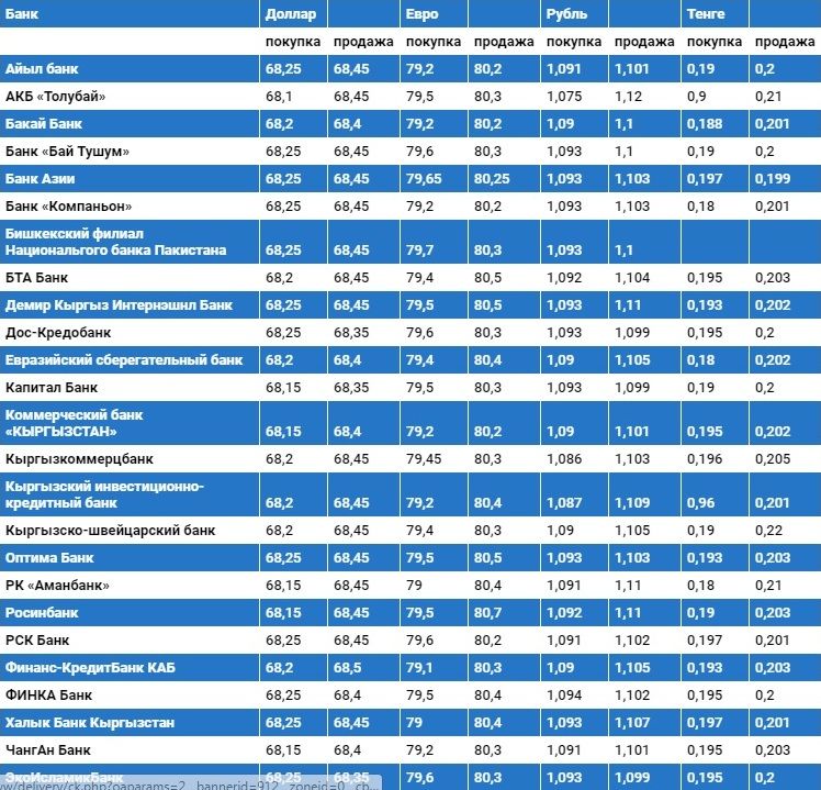 Валюталардын коммерциялык банктардагы бүгүнкү наркы