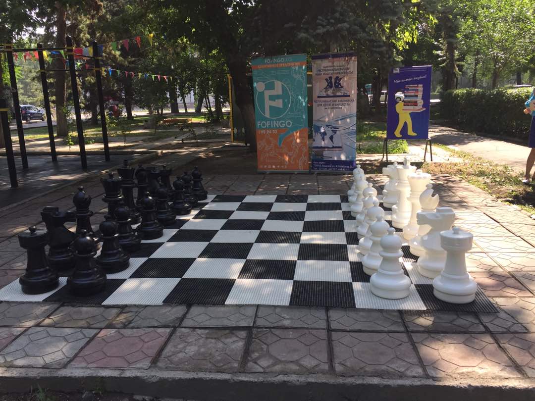 Бишкектеги республикалык китепкананын алдына балдар үчүн чоң шахмат тактасы орнотулду. Бул тууралуу Бишкек шаардык кеңешинин басма сөз кызматынан билдиришти.