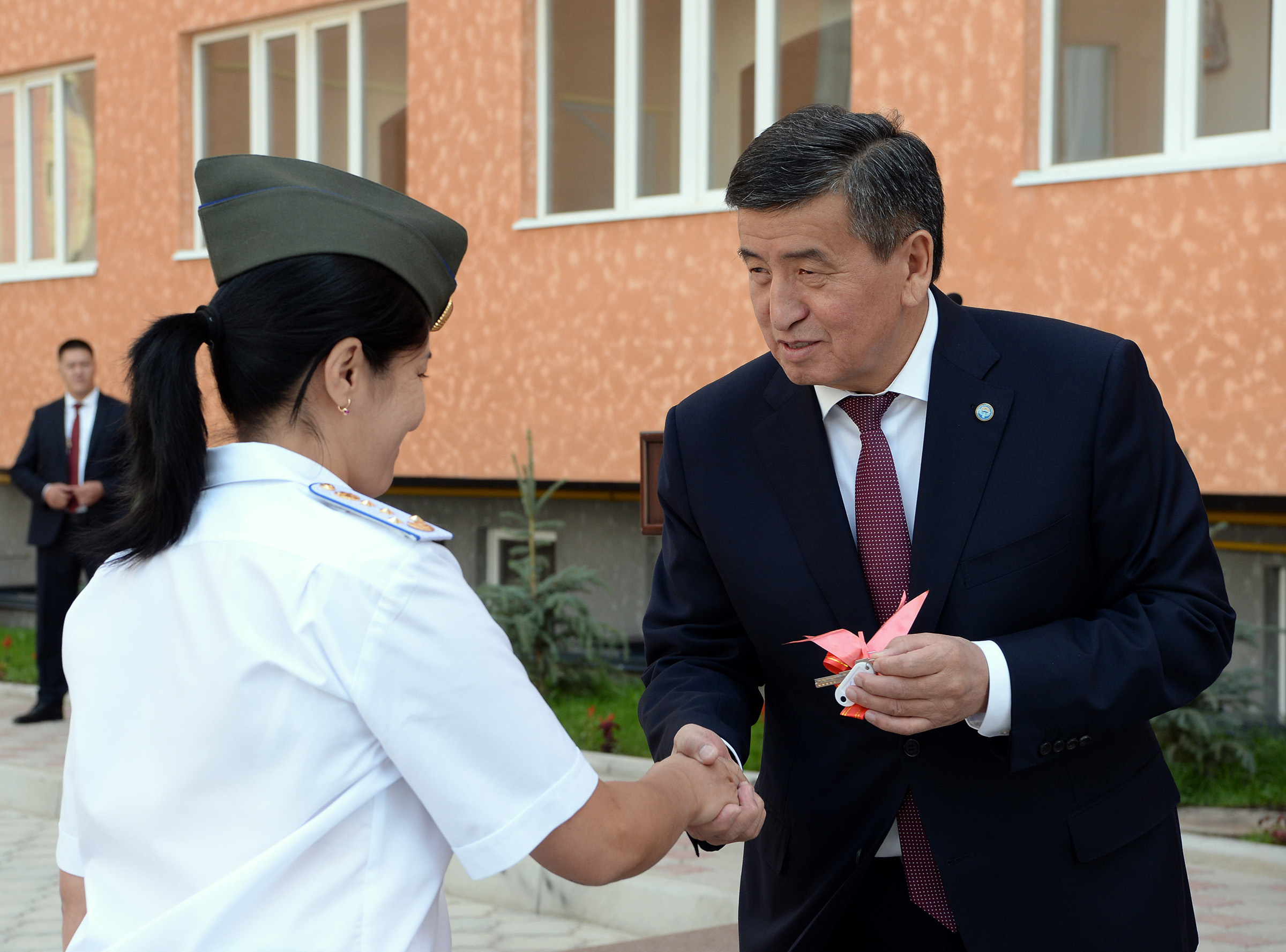 Президент Сооронбай Жээнбеков бүгүн Бишкекте Улуттук коопсуздук мамлекеттик комитетинин кызматкерлери үчүн курулган жаңы турак үйдүн ачылыш аземине катышып, батирлеринин ачкычтарын тапшырды. Бул тууралуу президенттин аппаратынан билдиришти.