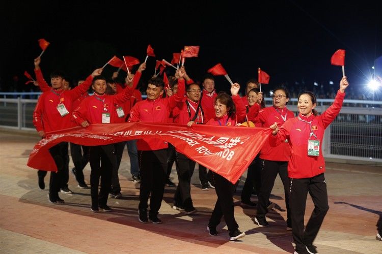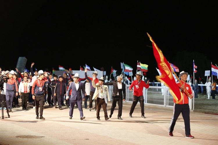 Ачылыш аземдин соңунда көчмөндөр оюндарынын катышуучуларынын жөө жүрүшү болду. Анда 82 өлкөдөн 2 миң 500гө жакын спортчу катышты. Алгачкы көчмөндөр оюндарына 19 мамлекеттен 800 спортчу, кийинки иш-чарага 62 өлкөдөн 1 миң 200 киши катышкан.