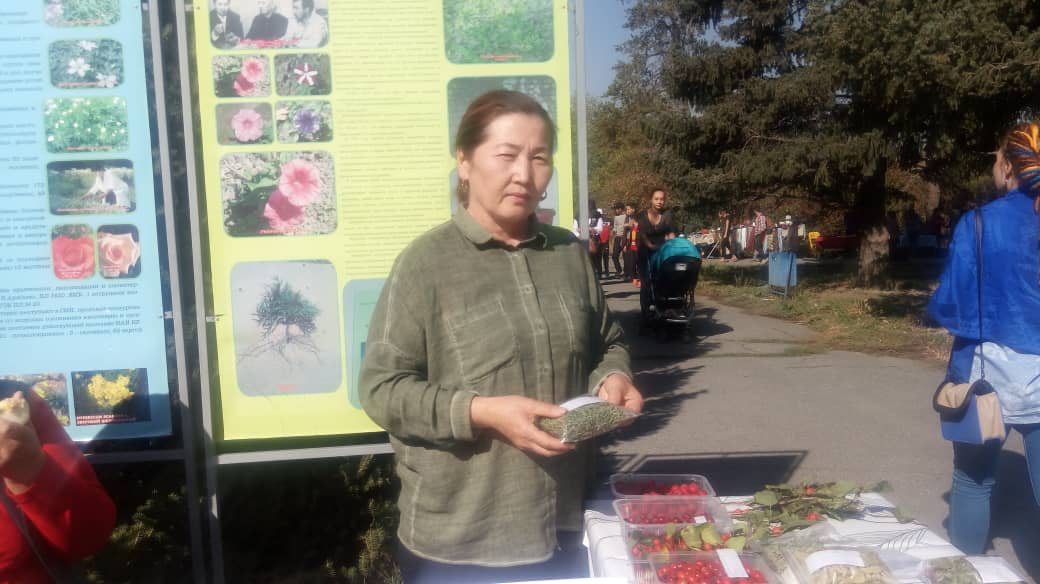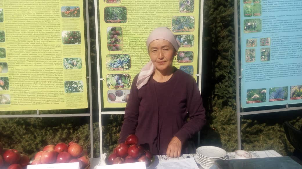 Мөмөлүү бактар лабораториясынын илимий кызматкери Имаралиева Дилдекан 24-kg.com агенттигине билдиргендей, ботаникалык бакта өстурүлгөн алма сортторун көргөзмөгө алып келишкен. Айтымында, 60 гектар мөмөлүү бак аянтында учурда 8 кызматкер эмгектенет. Анда алмуруттун 62 сорту, алманын 195 сорту өсөт. Ал эми колекцияда адистер атайын чаңдаштырып жасалма жол менен алган алманын 300, кара өрүктүн 309 түрү бар.